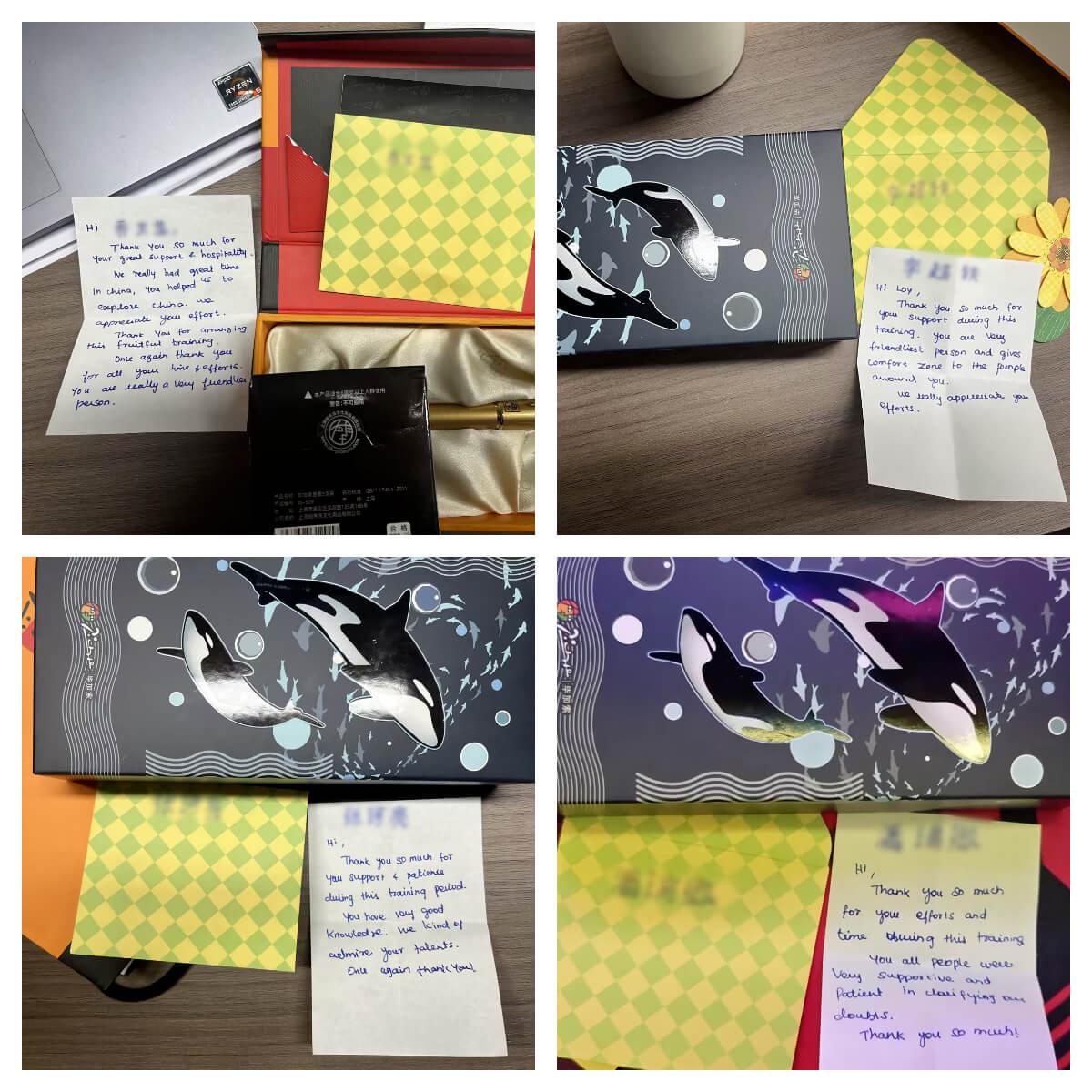 近日,leyu.com为来自海外的合作伙伴开展的定制化培训项目圆满收官。在这场为期半个月的深度交流中,双方不仅碰撞出专业领域的智慧火花,更在朝夕相处中结下深厚情谊。临别之际,客户代表向我司四位核心员工赠送了象征友谊的定制钢笔,并亲笔写下四封饱含谢意与真诚的贺卡,为这段跨国合作添上一抹温情注脚。